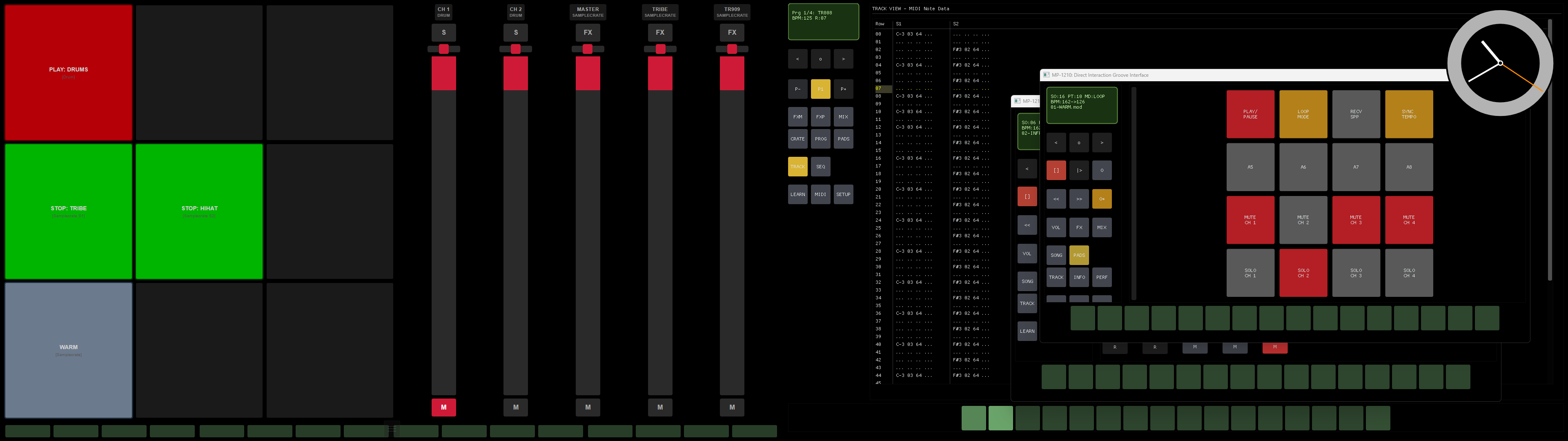 Take control of multiple Regroove and Samplecrate instances, Mixxx mixing decks, use the Akai Fire with the built-in Sequencer, and other MIDI enabled equipment!