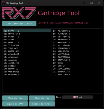 You can also test this online at https://music.gbraad.nl/rfxsynths/ by loading the `RX7 FM` synth and importing a voice bank cartridge.